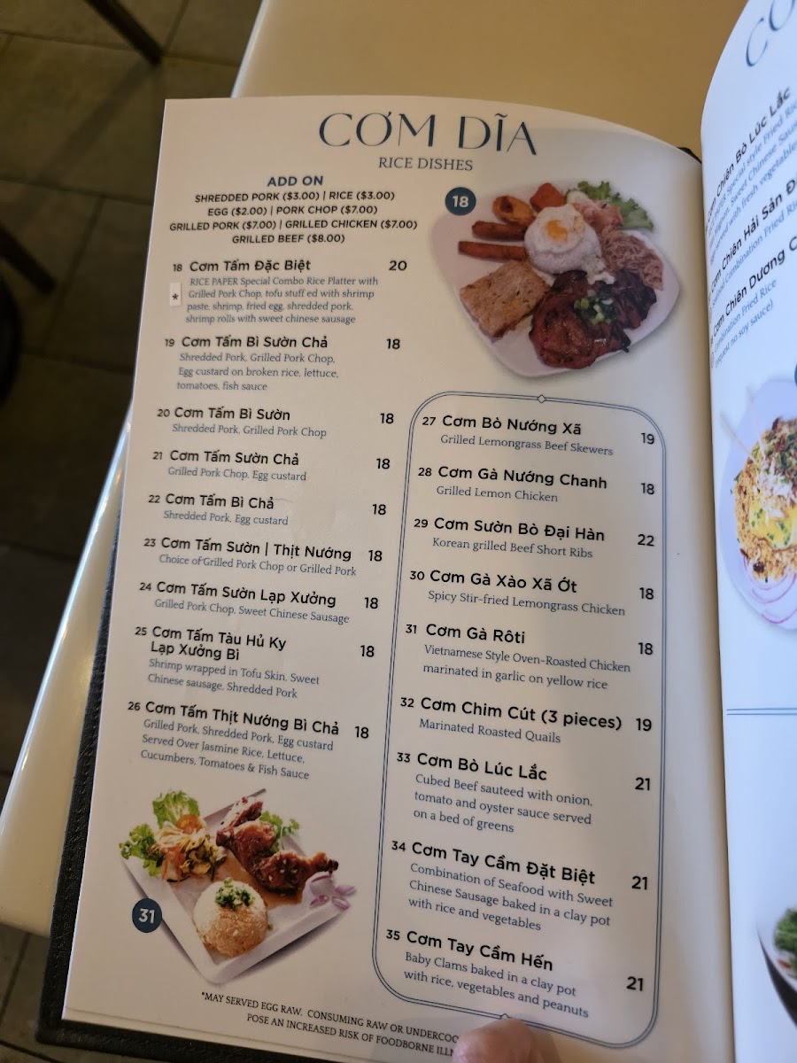 Rice Paper - Taste of Vietnam Menu